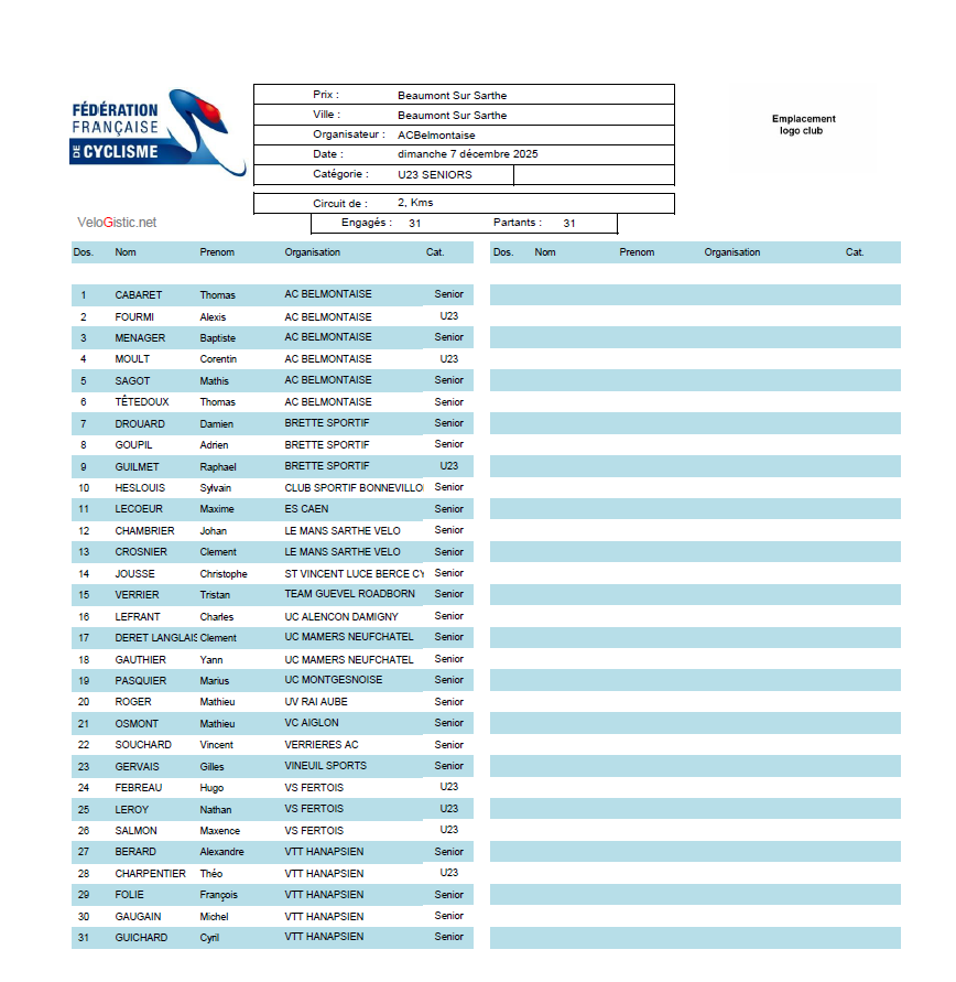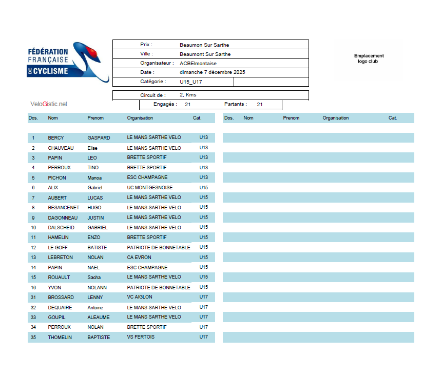 DIMANCHE 7 DECEMBRE 2025 A BEAUMONT SUR SARTHE (72)