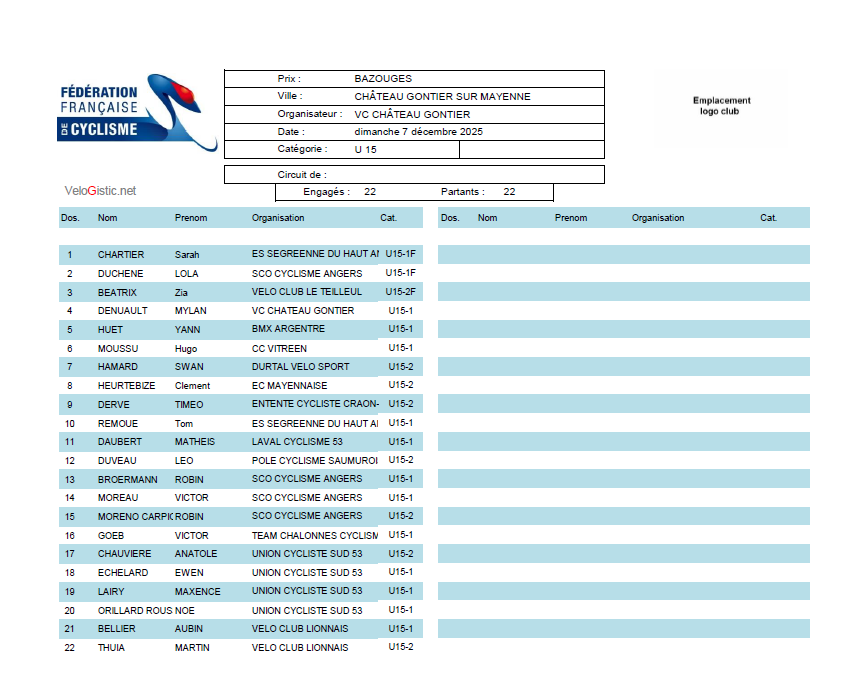 BOITEAU THEO ES SEGREENNE DU HAUT ANJOU CYCLISME