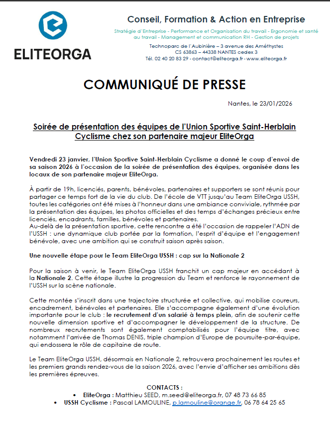 Communiqué de presse concernant la soirée de présentation des équipes 2026 de l’Union Sportive Saint-Herblain Cyclisme, ayant eu lieu Vendredi 23 Janvier 2026.