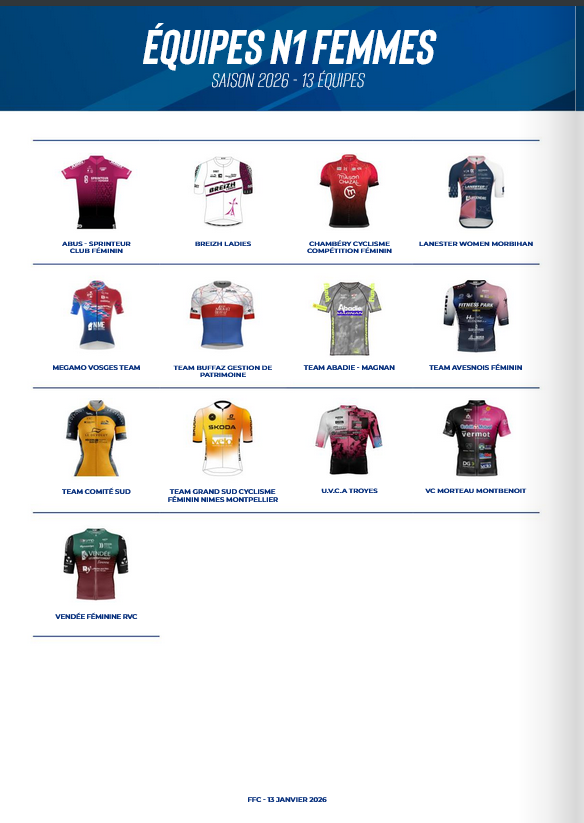 À l’issue de son Bureau exécutif réuni le 15 janvier 2026, la Fédération Française de Cyclisme (FFC) a officiellement dévoilé la liste des équipes labellisées pour la saison 2026 en cyclisme sur route amateur.