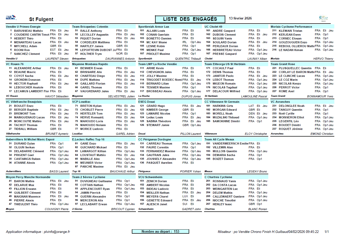 ETAPE 1 – VENDREDI 13 FEVRIER 2026 – 141km