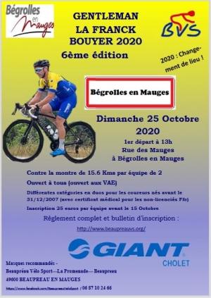 Voir en pièce jointe le bulletin d'inscription pour la Gentleman Franck Bouyer prévue le dimanche 24 octobre à Begrolles en Mauges.