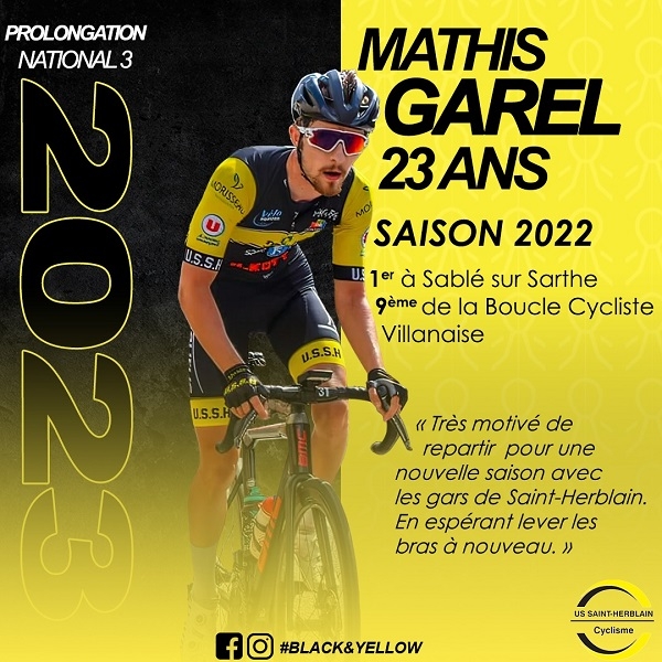 Mathis Garel continu l'aventure avec la N3 de L'US St Herblain Cyclisme