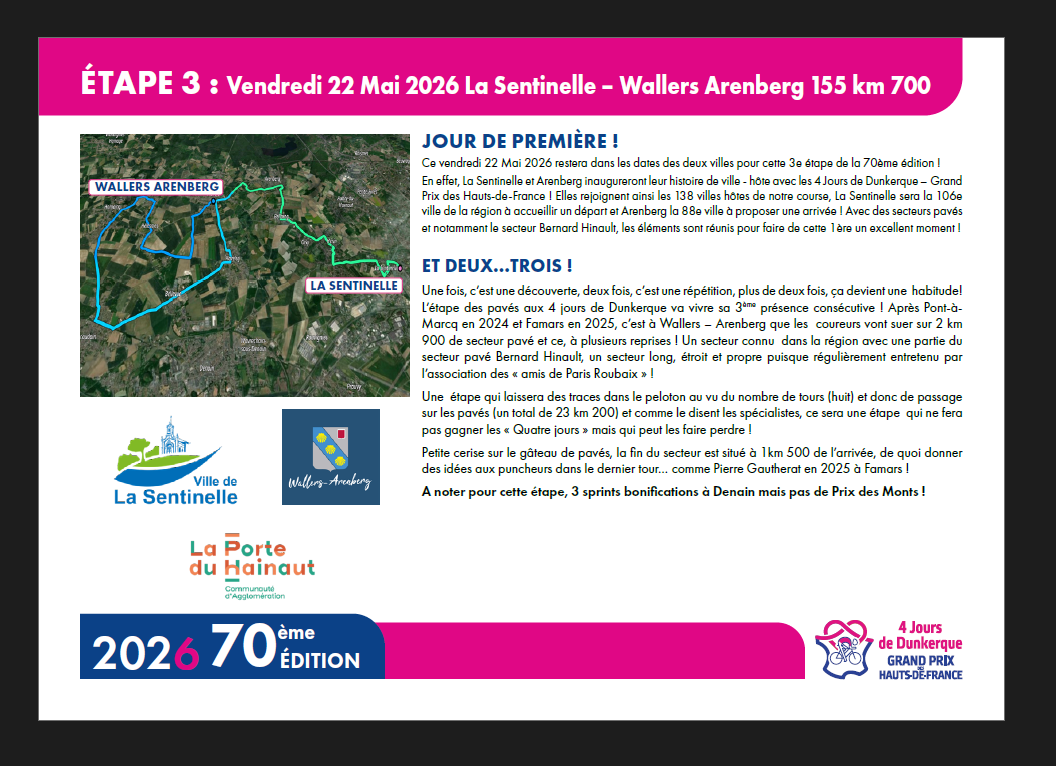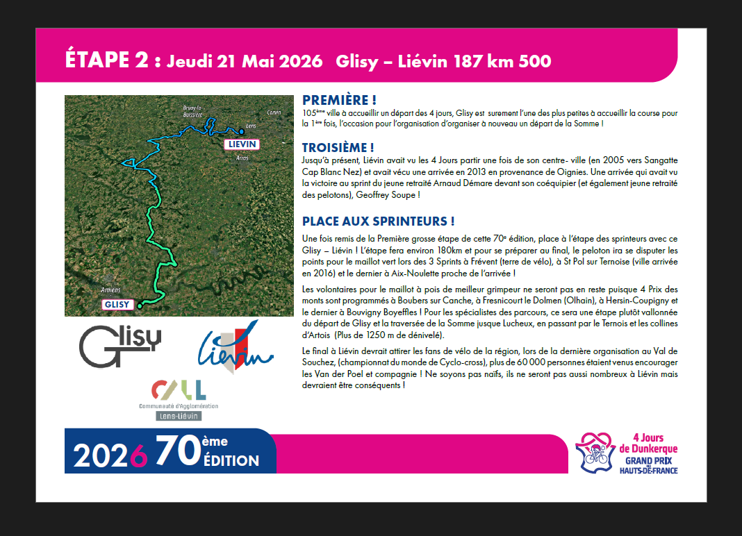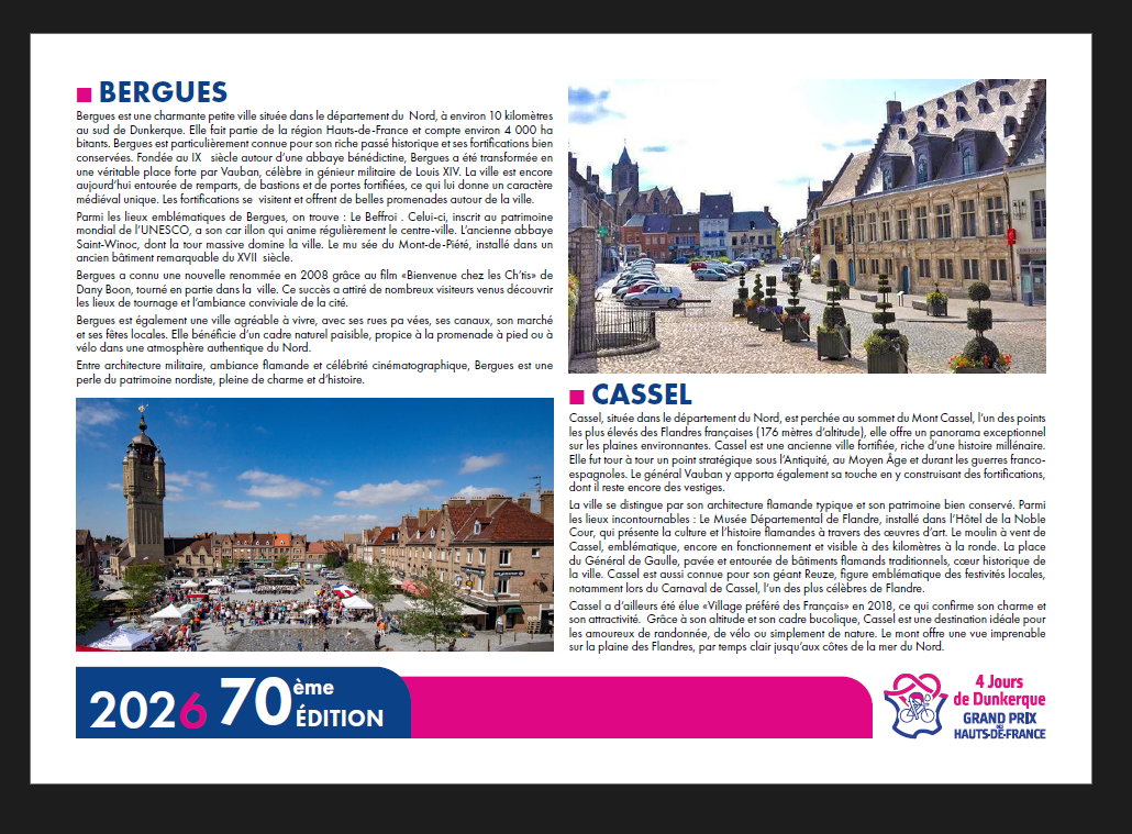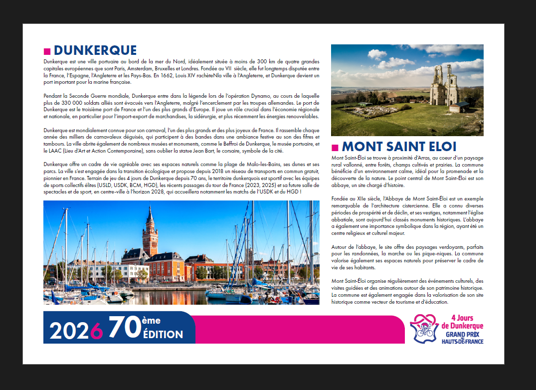 Les 4 jours Organisation présentent les parcours 2026 de la Classique Dunkerque – Hauts-de-France et de la 70e édition des 4 jours de Dunkerque- Grand prix des Hauts-de-France qui auront lieu du 19 au 24 Mai 2026 !