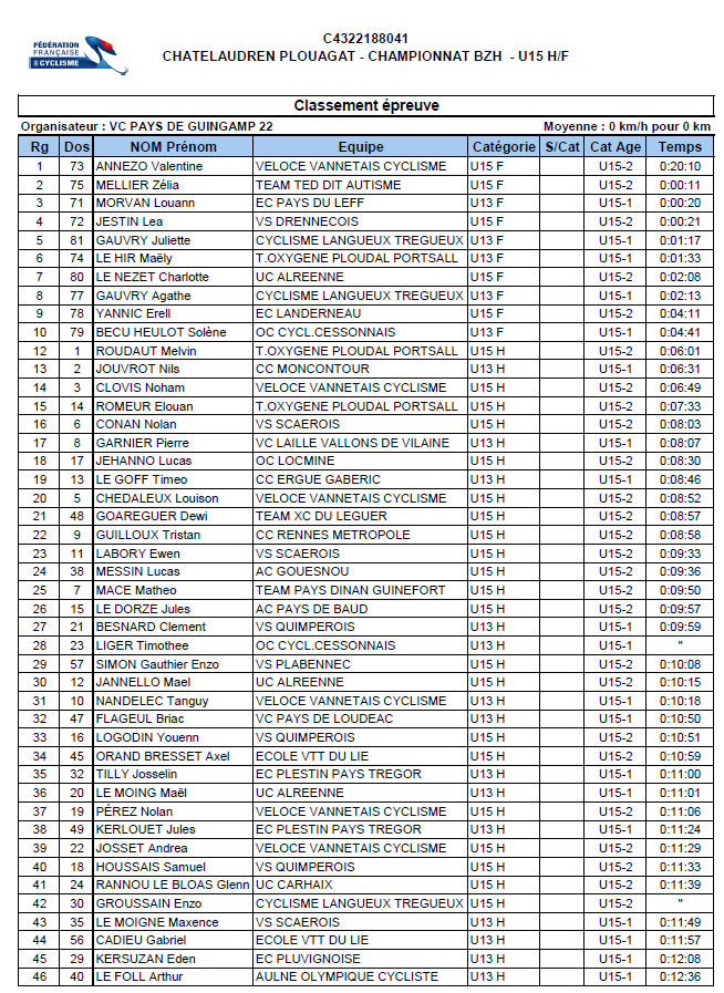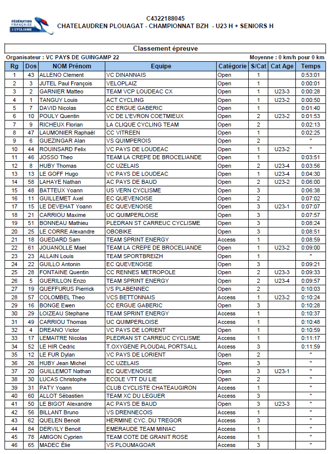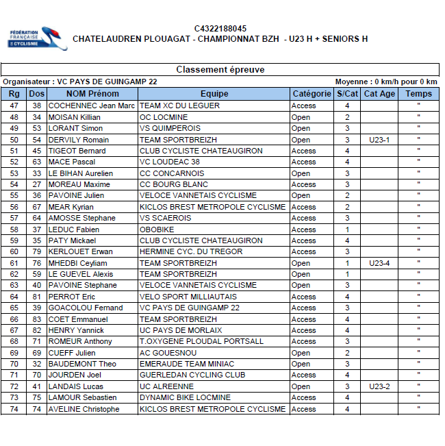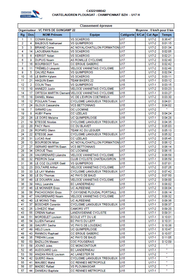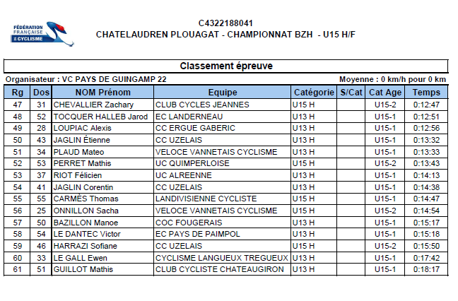 CHATELAUDREN PLOUAGAT - CHAMPIONNAT BRETAGNE