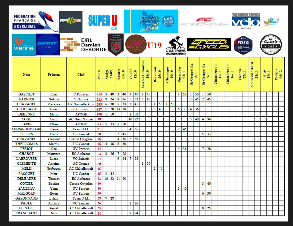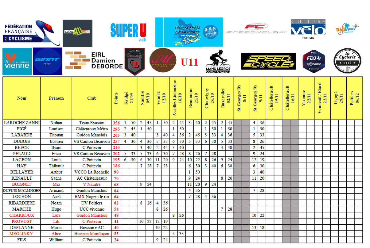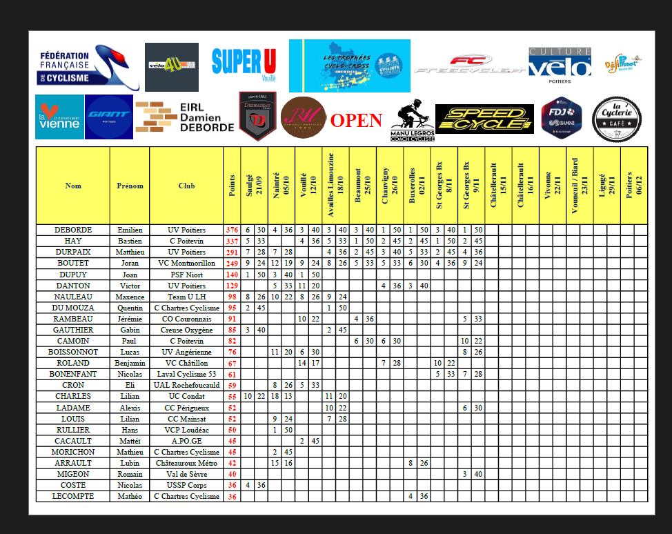 La 4ème édition des trophées Cyclo-Cross de la Vienne bat son plein, puisque nous venons de disputer la 9ème des 15 manche.