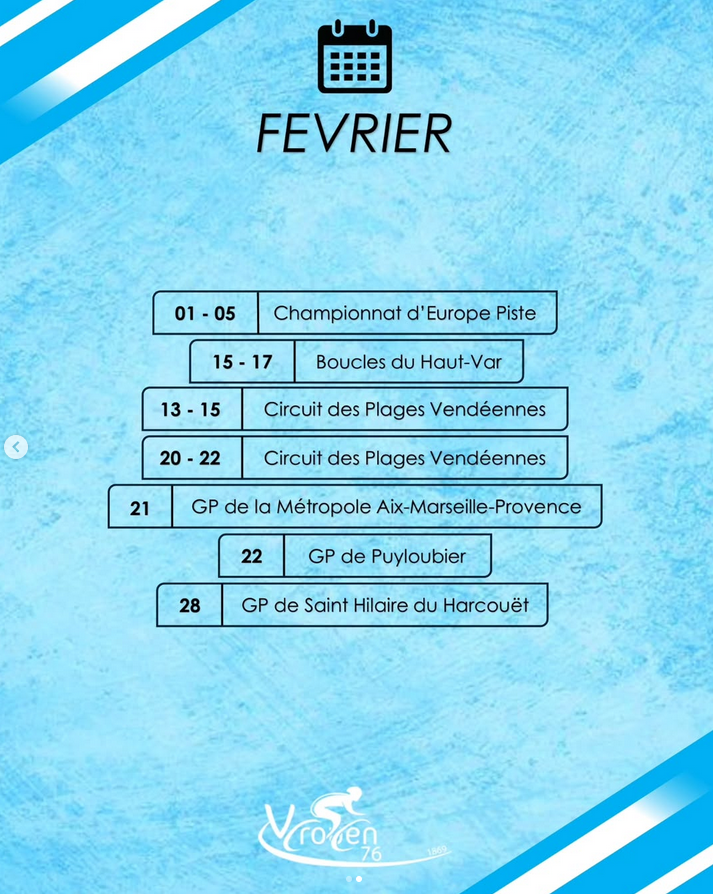VOIR EN IMAGE LE PROGRAMME DU MOIS DE FEVRIER DU VC ROUEN 76 (Continentale Fédérale )