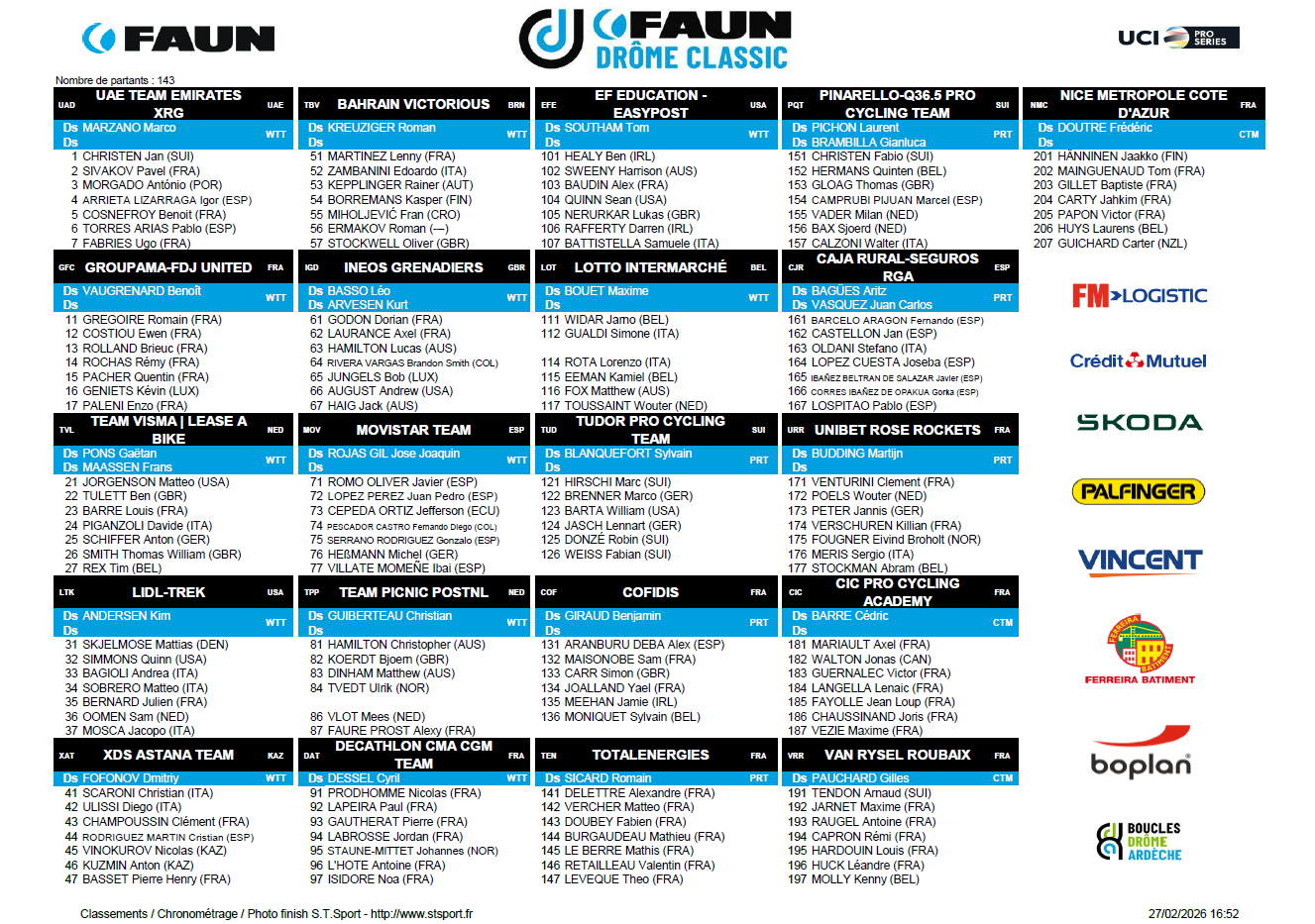 DIMANCHE 1 MARS 2026 FAUN DROME CLASSIC VOIR LES ENGAGES EN IMAGE Remerciements à Frédéric LAFARGUESTS