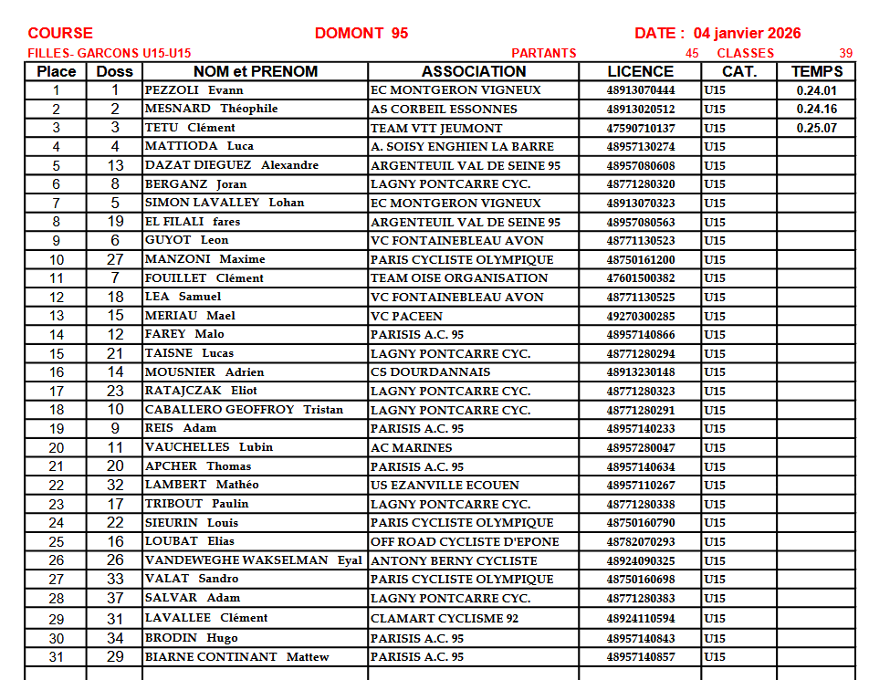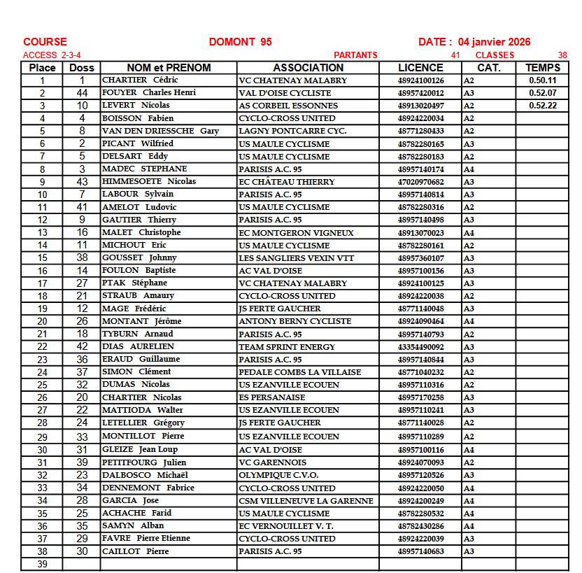 Ecrit par Pascal dans Résultats le lundi 5 janvier 2026 à 18:51