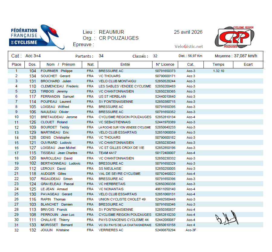 Remerciements au CR Pouzauges