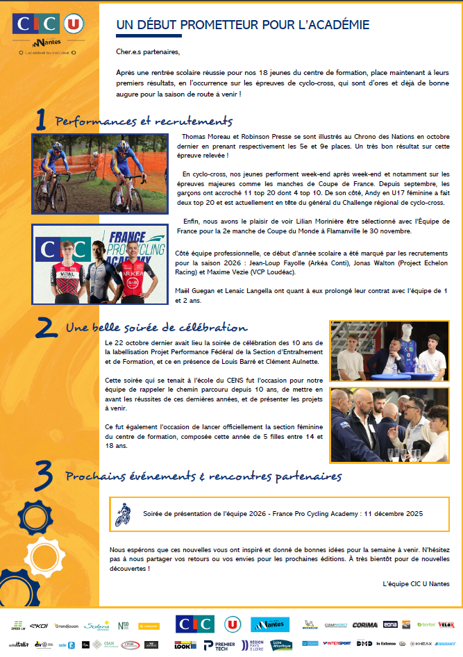 Nous sommes ravis de partager avec vous une nouvelle édition de notre newsletter, riche en résultats et pleine de promesses pour la saison à venir.