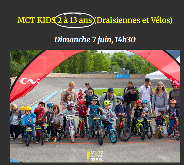 MCT KIDS (2-13 ans) (Draisienne et Vélo) à vélodrome et l’Espace Sport et Nature du Fier – MOTZ .