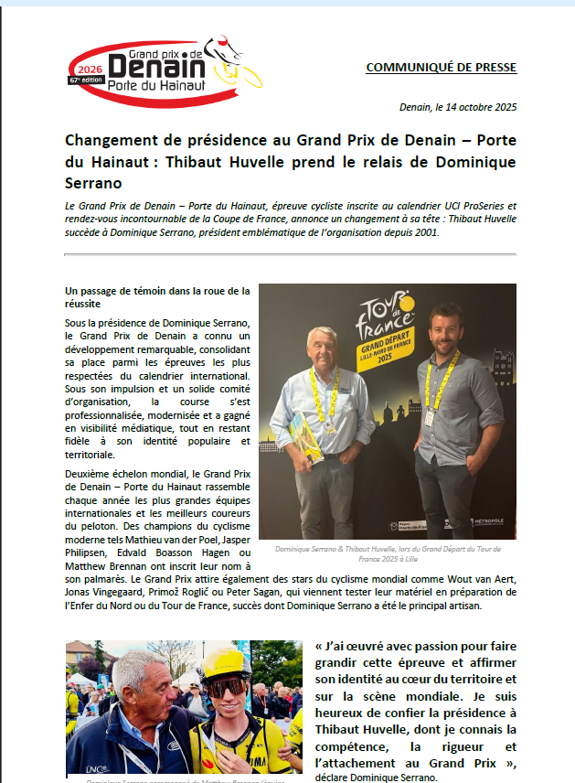 GP de Denain "Communiqué de presse 2"