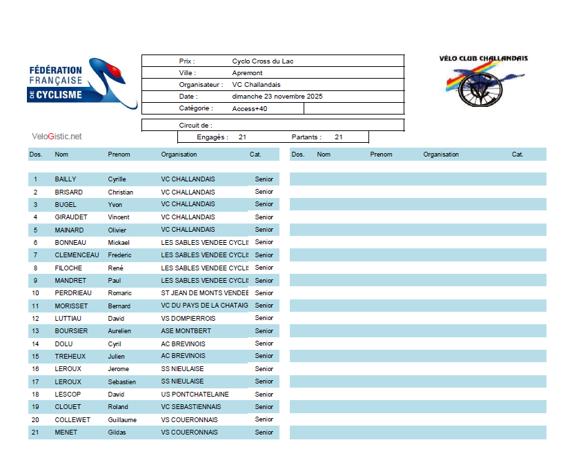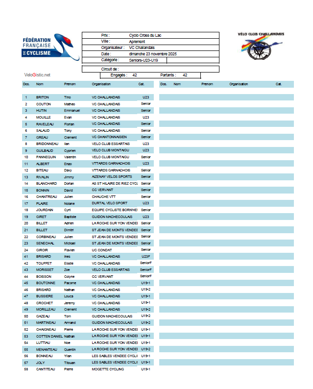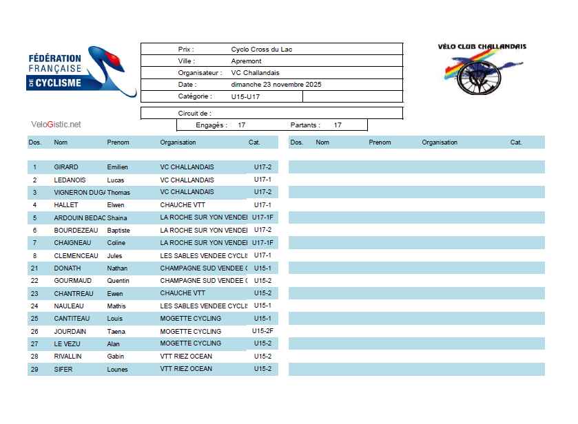 DIMANCHE 23 NOVEMBRE 2025 A APREMONT (85)