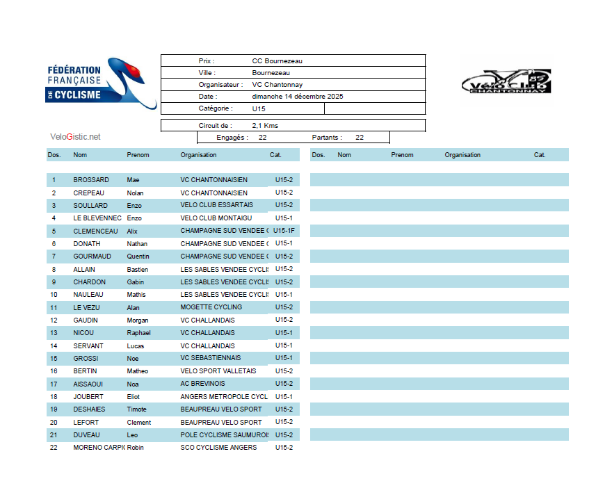 DIMANCHE 14 DECEMBRE 2025 A BOURNEZEAU (85)