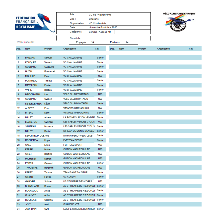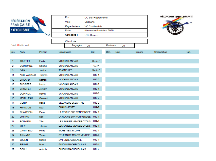 DIMANCHE 5 OCTOBRE 2025 A CHALLANS (85)