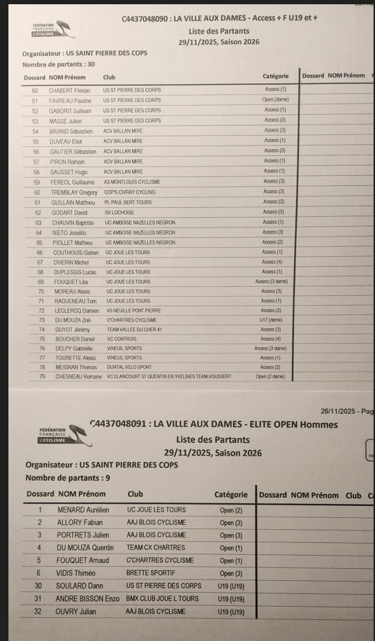 VOIR LES ENGAGES EN IMAGES (SENIORS-ACCESS-U17-U15)