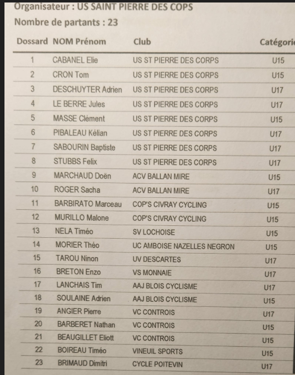 18 JARRY Gabin COP'S CIVRAY CYCLING U9