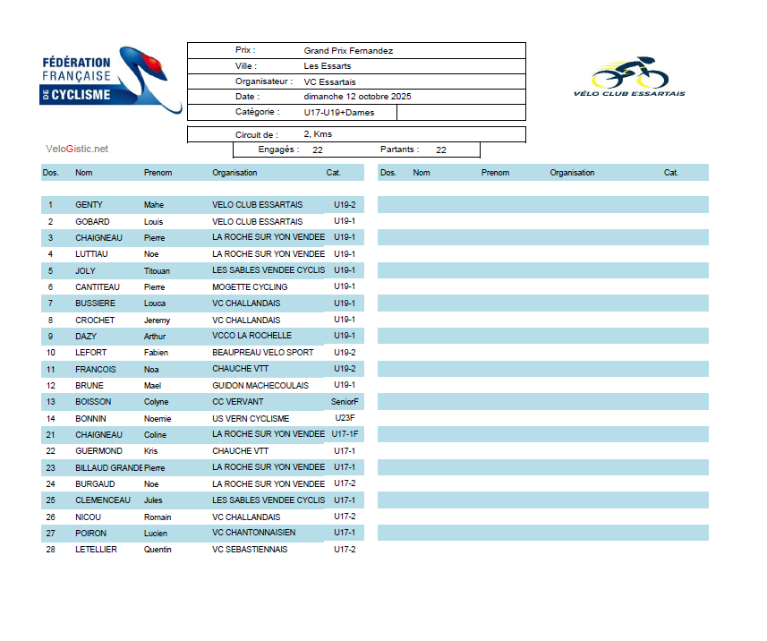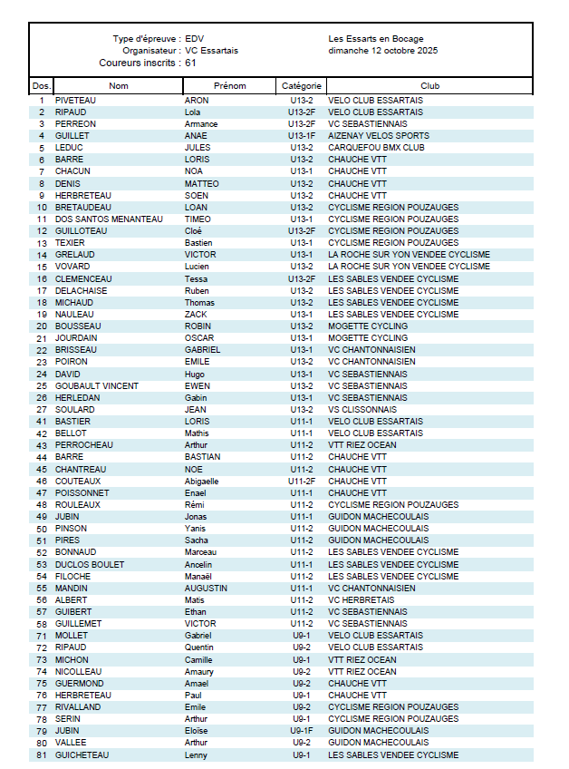 DIMANCHE 12 OCTOBRE 2025 AUX ESSARTS (85)