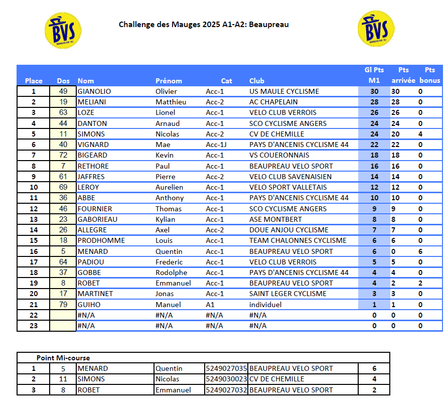 Beaupréau "Ch.des Mauges" (Access 1.2): Classement aux Points
