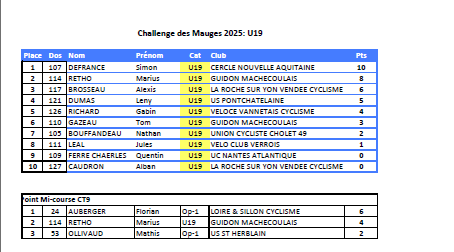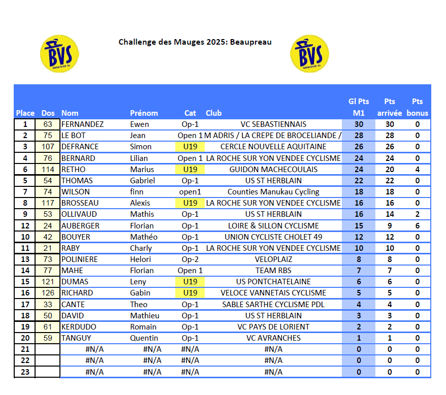 Beaupréau "Ch.des Mauges" (Open): Classement aux Points