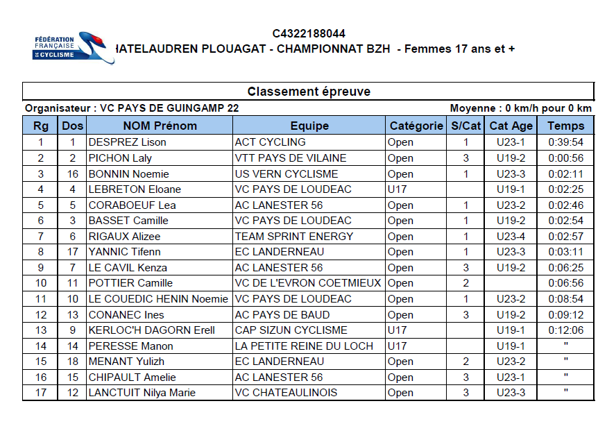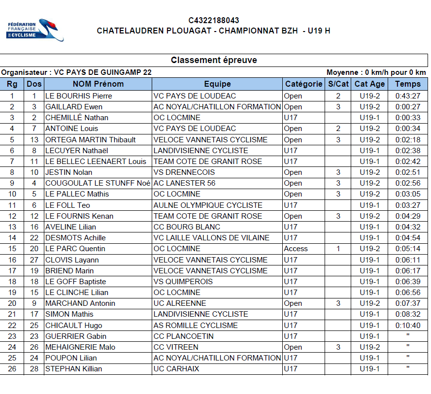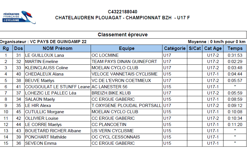 CHATELAUDREN PLOUAGAT - CHAMPIONNAT BRETAGNE