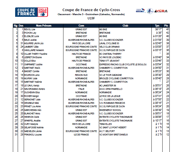 VOIR TOUS LES CLASSEMENTS EN IMAGES
