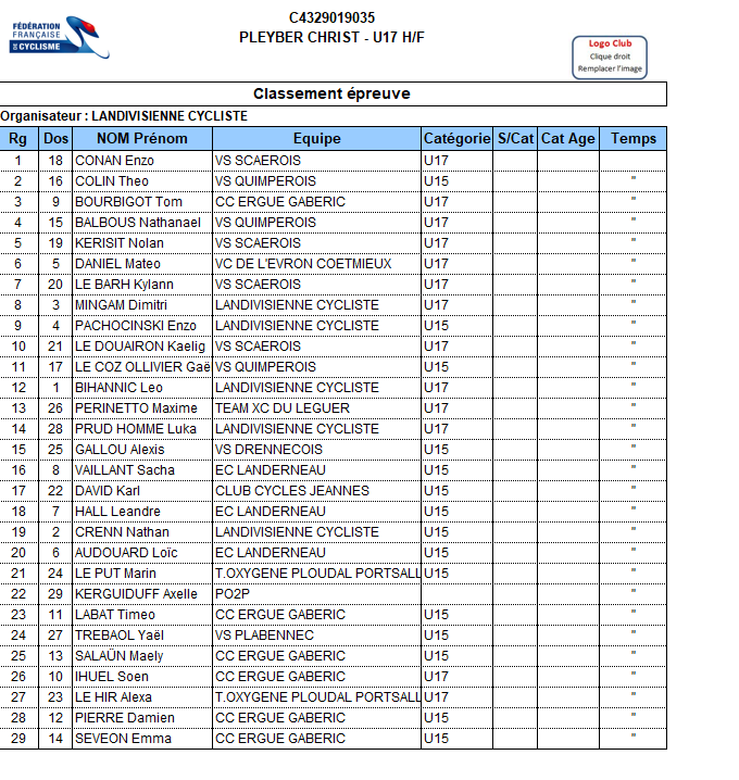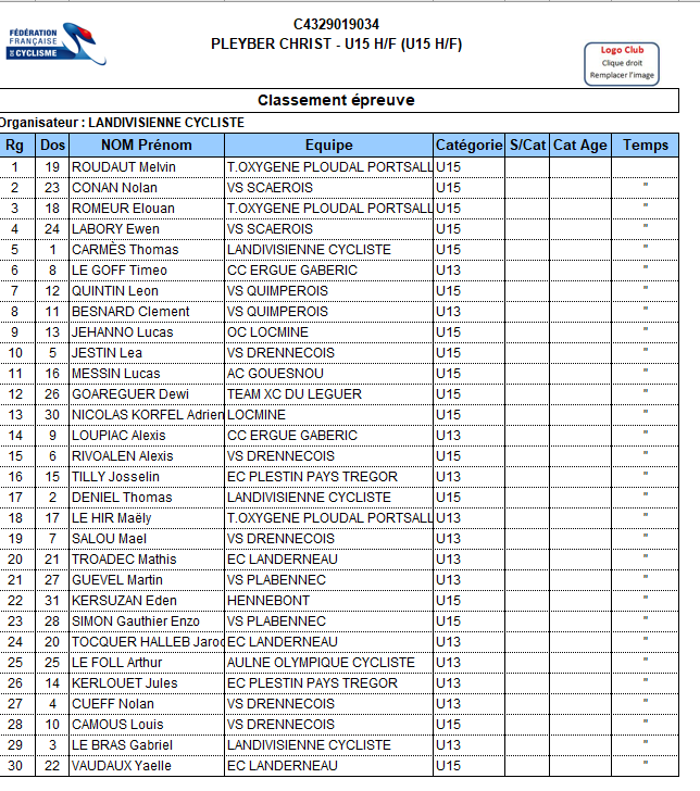 VOIR LES CLASSEMENTS EN IMAGES