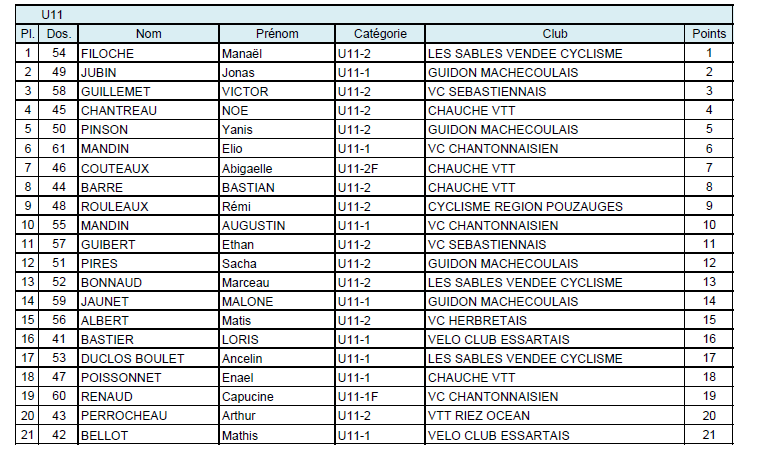 Org. : VC Essartais VOIR LES CLASSEMENTS EN IMAGES Remerciements à Hubert GUILBAUDVendée Chrono Finish