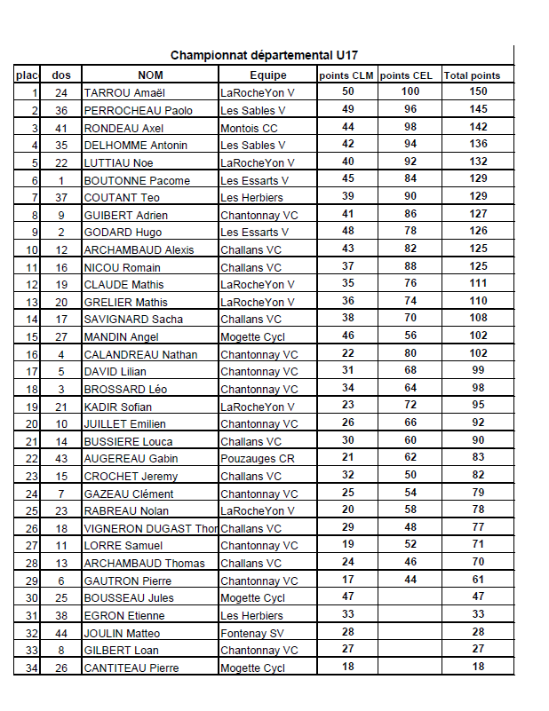 CLASSEMENT GENERAL APRES LES 2 EPREUVES (CLM Ind.+ Course en ligne)