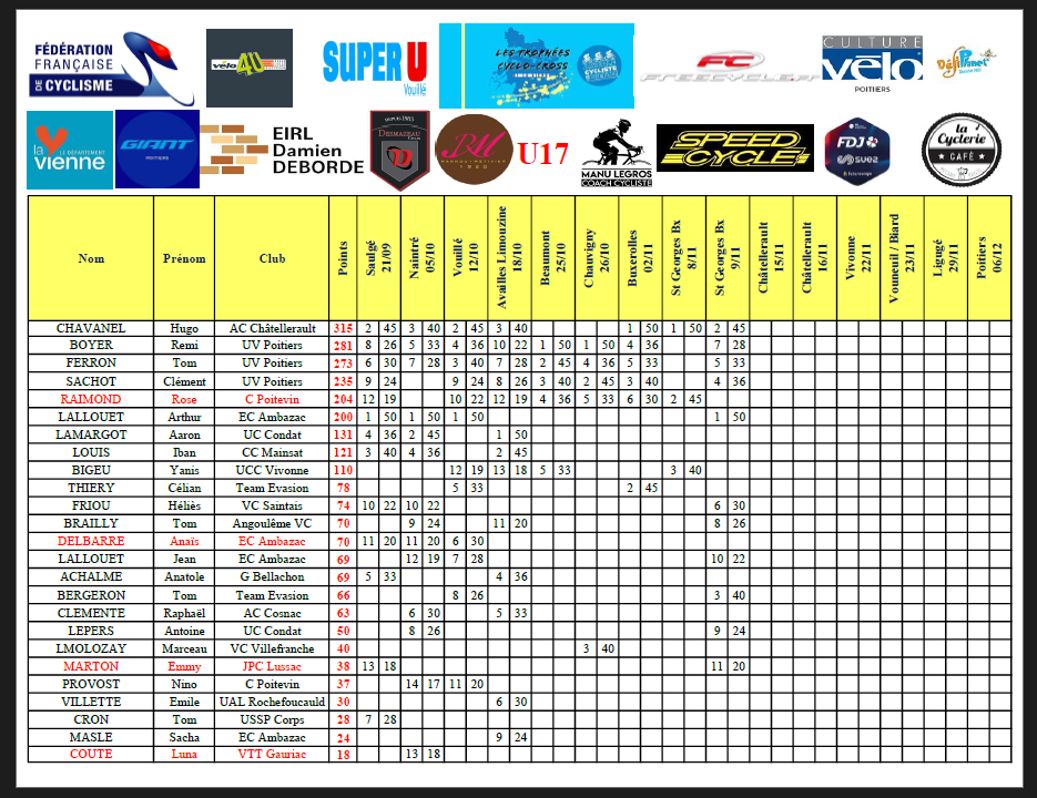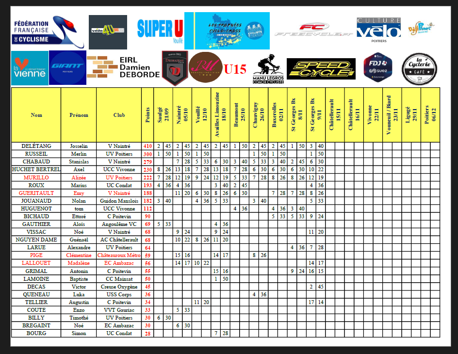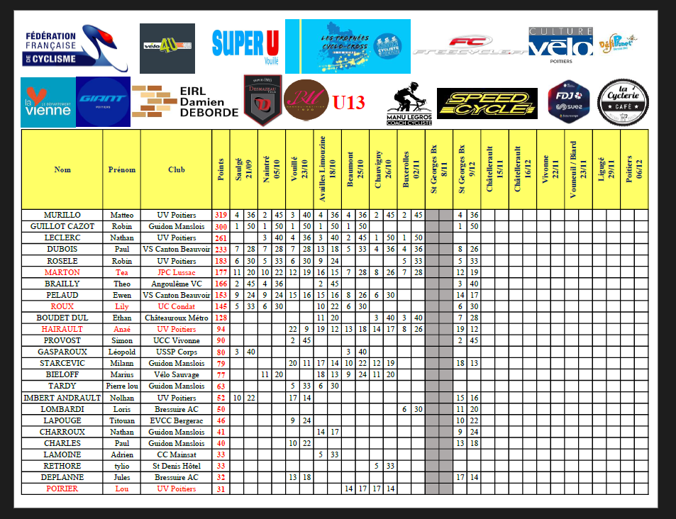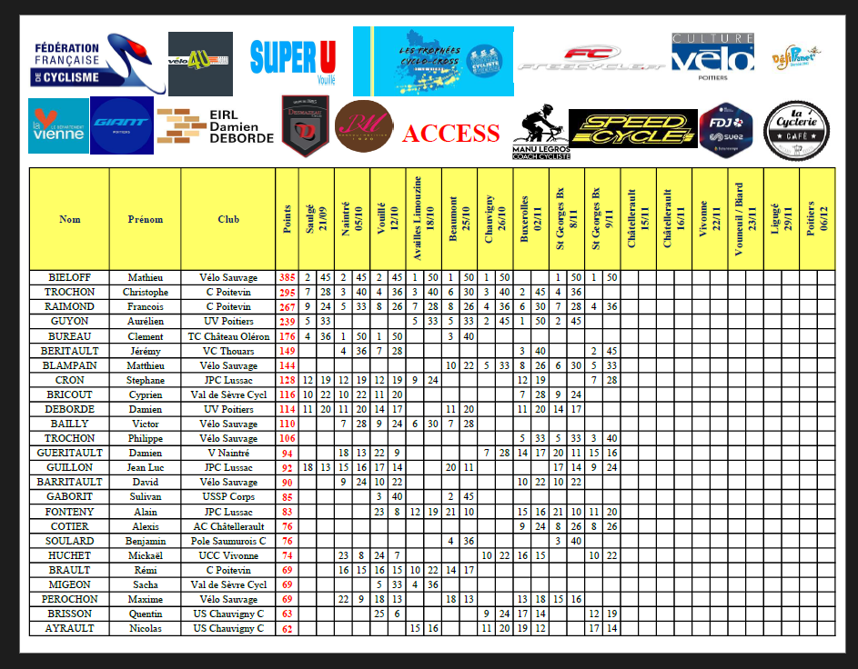 La 4ème édition des trophées Cyclo-Cross de la Vienne bat son plein, puisque nous venons de disputer la 9ème des 15 manche.