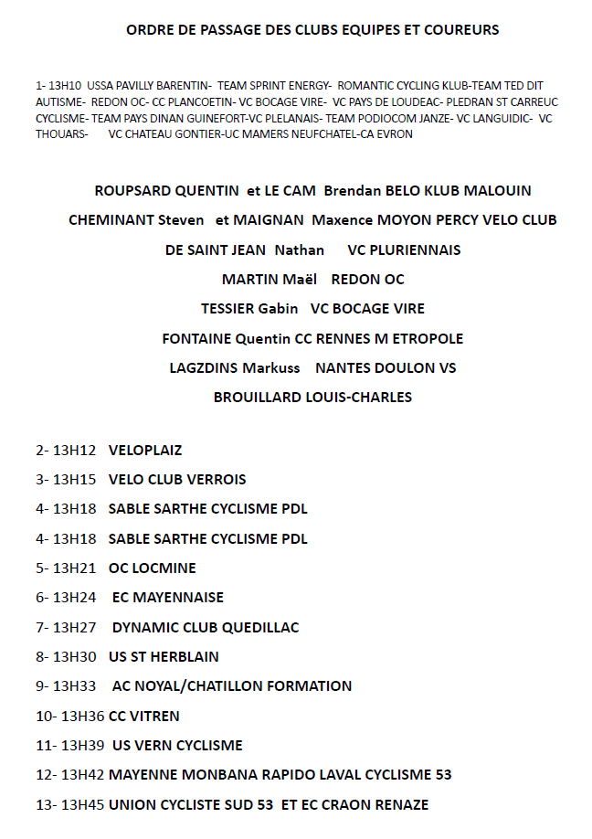 DIMANCHE 29 MARS 2026 VOIR EN IMAGE HORAIRE PRESENTATION EQUIPE CLUB ET COUREURS Remerciements à Matthieu Prod'homme