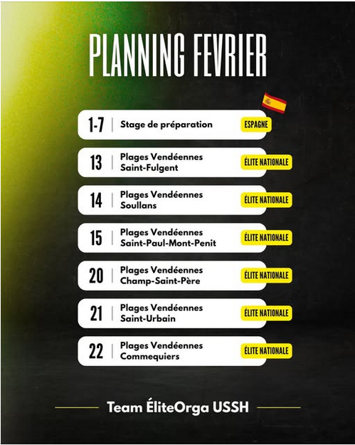 VOIR EN IMAGE LE PROGRAMME DU MOIS DE FEVRIER DU TEAM ELITEORGA USSH