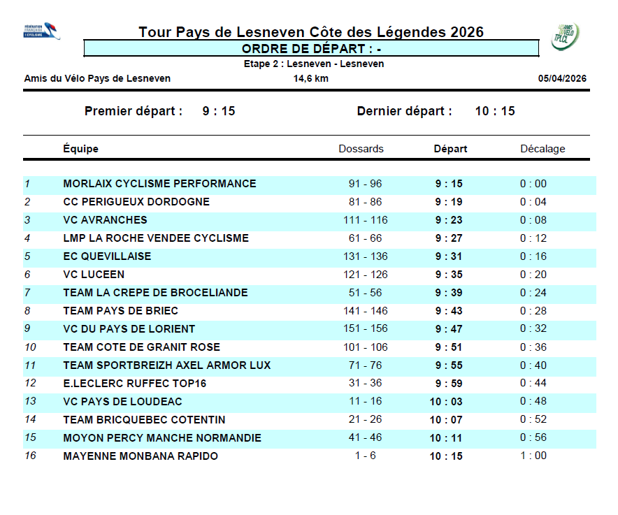DIMANCHE 5 AVRIL 2026 VOIR LES HORAIRES DE DEPART DU CONTRE LA MONTRE PAR EQUIPE EN IMAGE Remerciements à yanickL Lefebvre