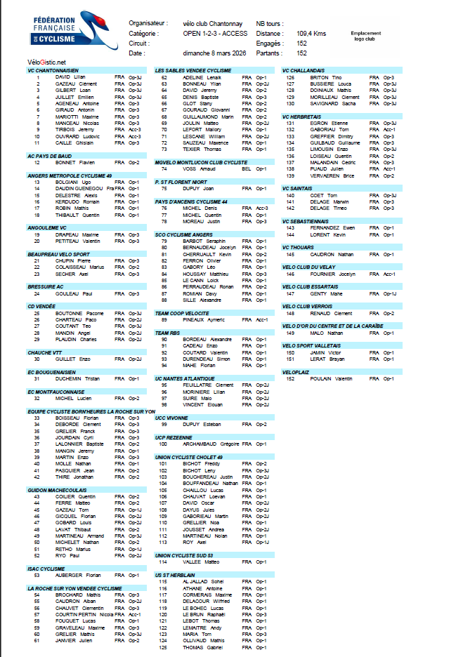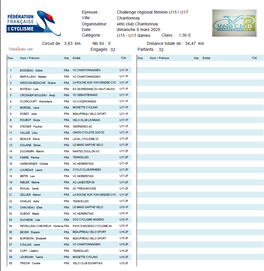 Remerciements à Rodolphe DAVIAUD et Emmanuelle Gilbert (Secrétaire vélo club Chantonnay)