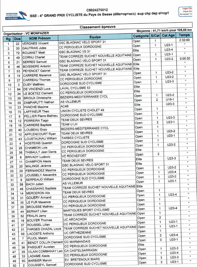 Ecrit par Pascal dans Résultats le lundi 20 avril 2026 à 19:16