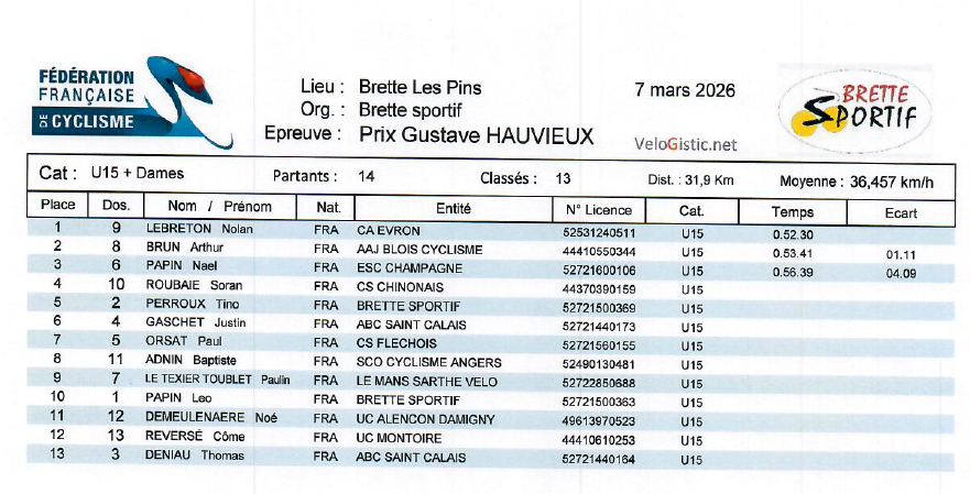 Brette-les-Pins (17/U15/U13)