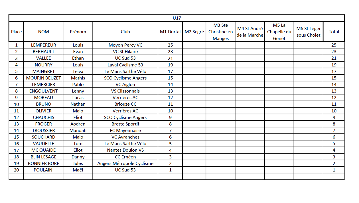 1 LEMPEREUR Louis 10081515851 MOYON PERCY VELO CLUB U17