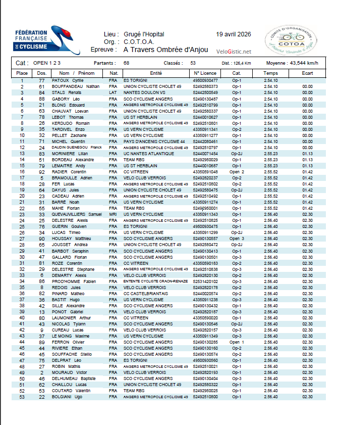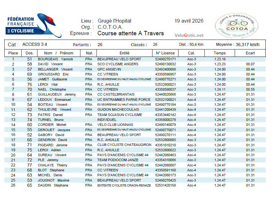 Ecrit par Pascal dans Résultats le lundi 20 avril 2026 à 10:06