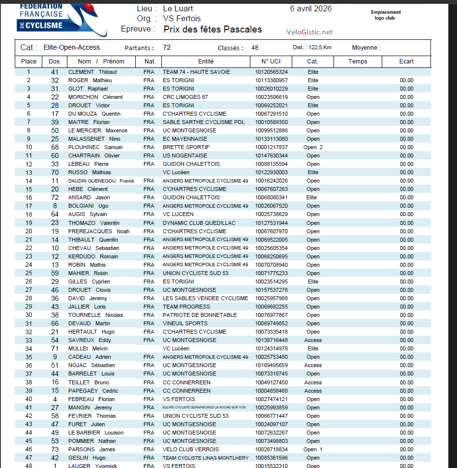 Ecrit par Pascal dans Résultats le lundi 6 avril 2026 à 20:52