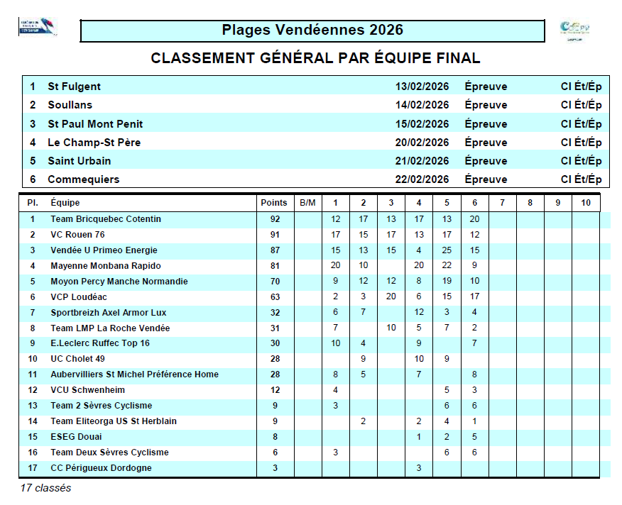 Anatole LEBOUCHER (VC Rouen 76) remporte le Classement Génréal des Plages Vendéennes 2026, devant ses 2 coéquipiers Mavric BEAUNE et Florentin LECAMUS-LAMBERT