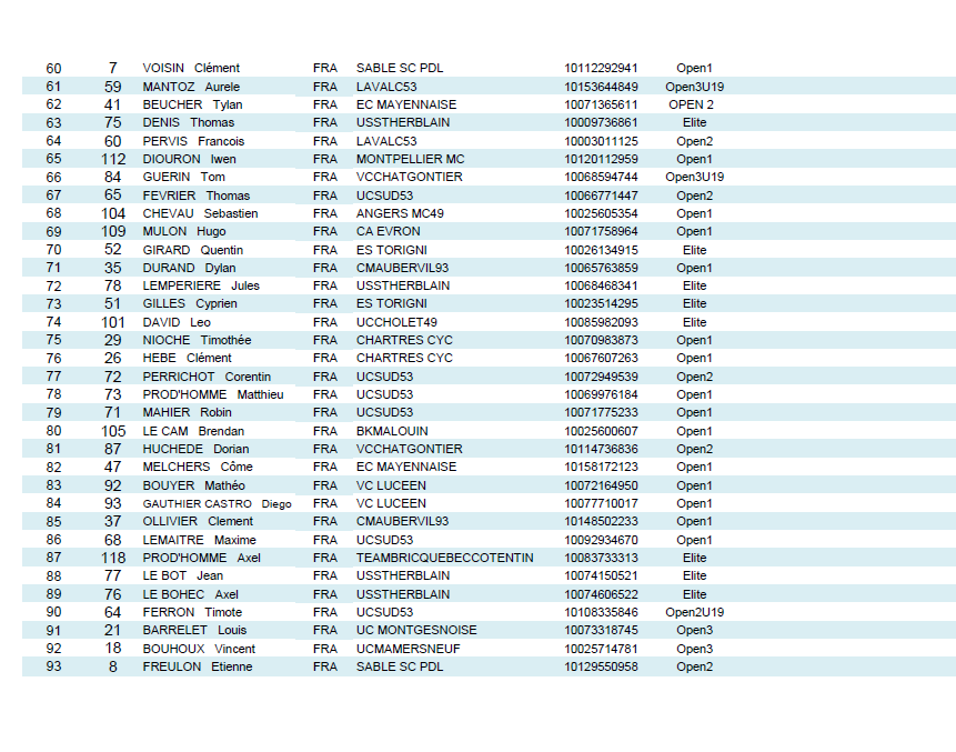 VOIR LES CLASSEMENTS EN IMAGES Remerciements à Bruno OGÉPrésident du Sablé Sarthe Cyclisme Pays de la Loire