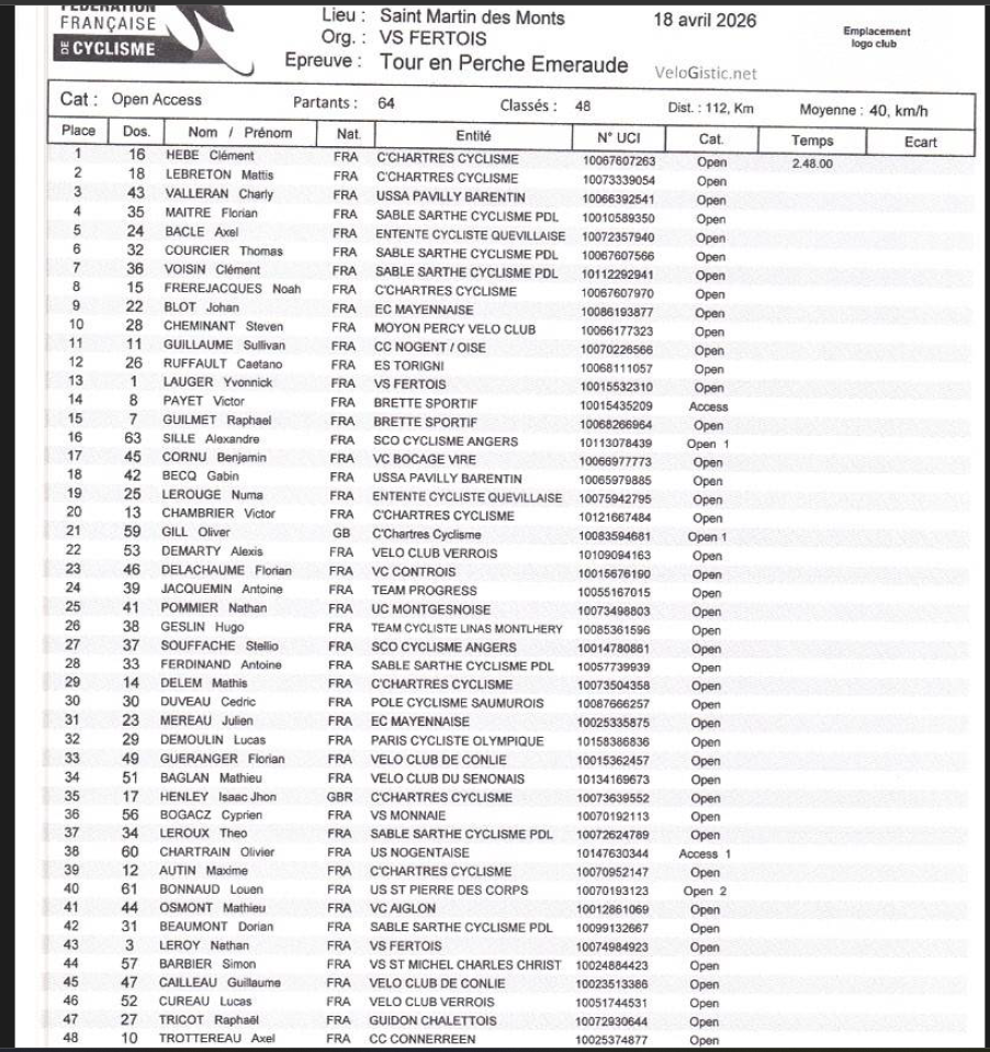 Ecrit par Pascal dans Résultats le samedi 18 avril 2026 à 20:48