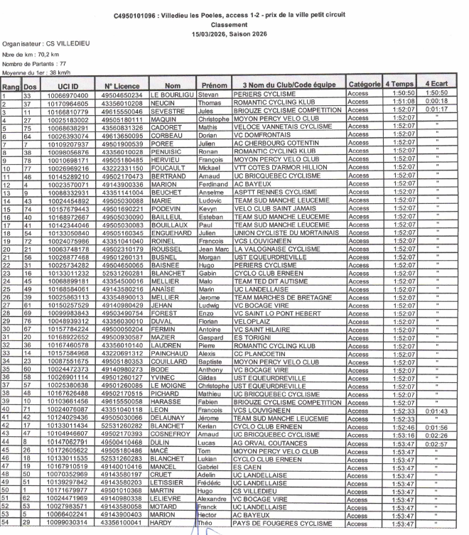 Ecrit par Pascal dans Résultats le lundi 16 mars 2026 à 19:35
