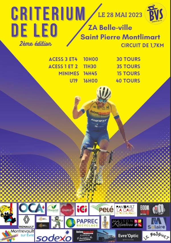 La course de Léo le Dimanche 28 mai 2023 à Saint Pierre Montlimart (49) organisée par le Beaupréau Vélo Sport.