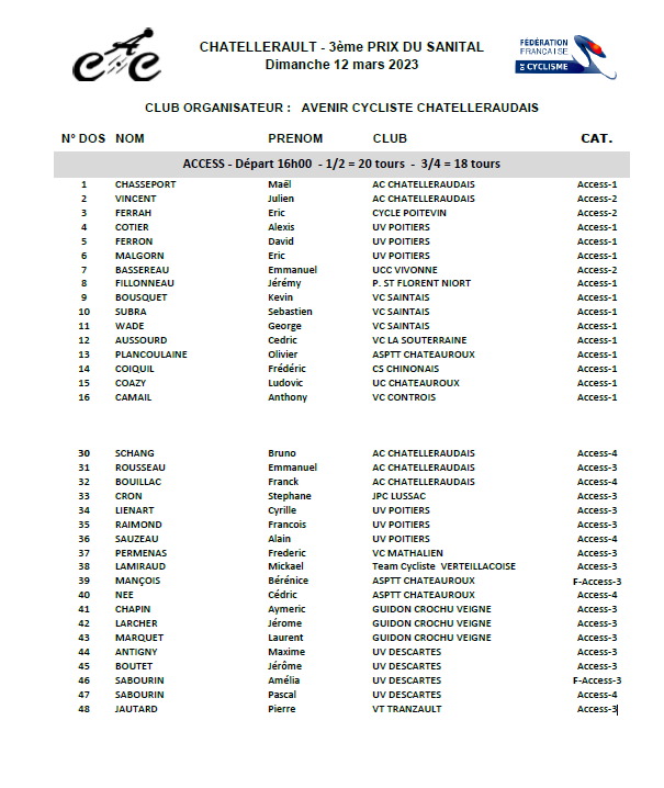 Dimanche 12 Mars 2023 3ème Prix du Sanital à Châtellerault (86) Access/U17/U15