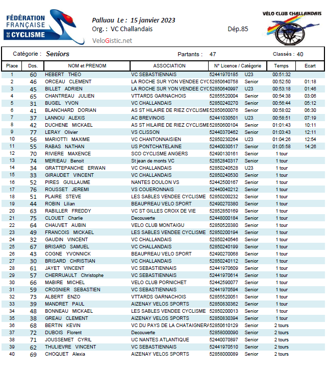 Ecrit par Pascal dans Résultats le lundi 16 janvier 2023 à 9:45