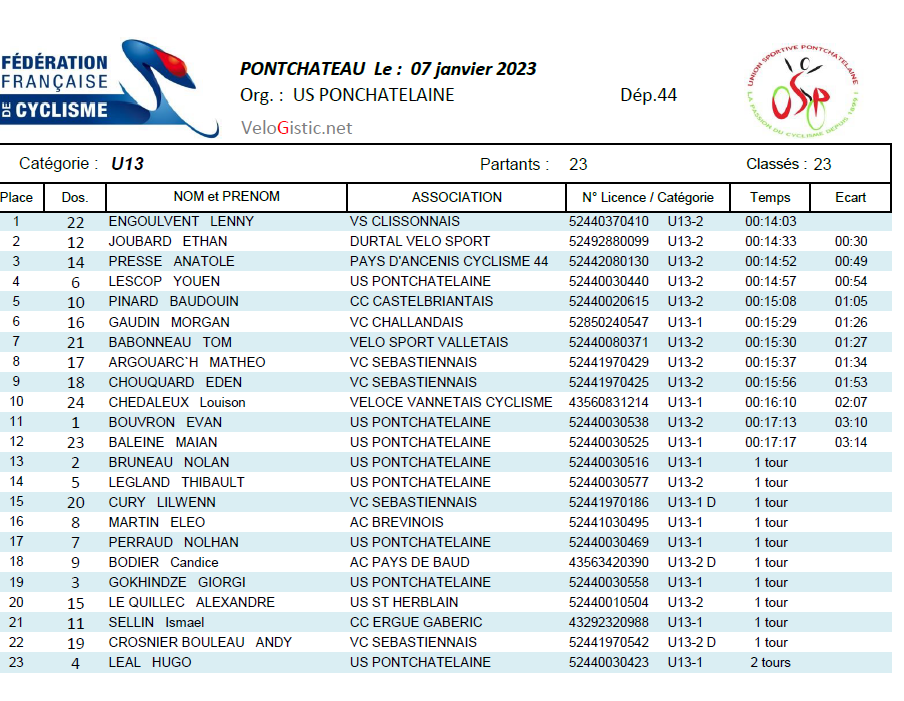 Ecrit par Pascal dans Résultats le samedi 7 janvier 2023 à 20:12