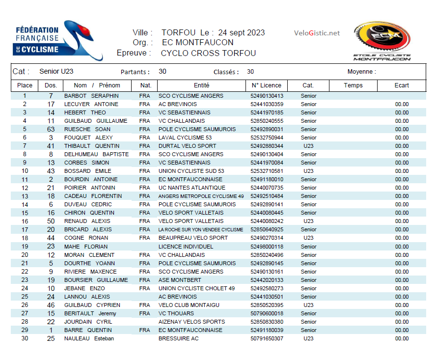 Cyclo-Cross de TORFOU (Souvenir Cédric DROUET)