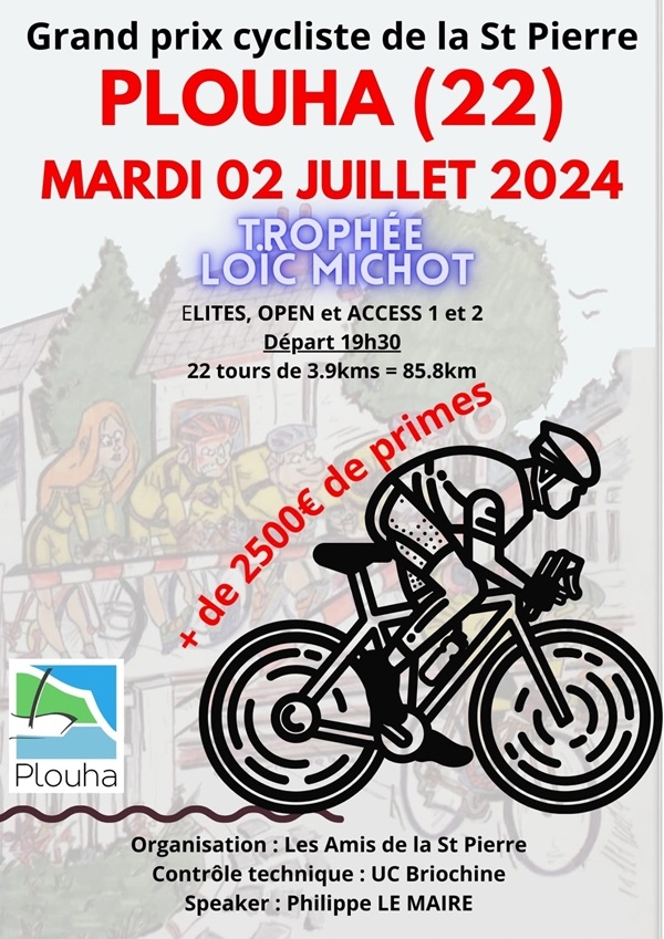 Grand Prix de la St Pierre à Plouha (22) - Trophée Loïc Michot - qui se déroulera le Mardi 2 Juillet 2024